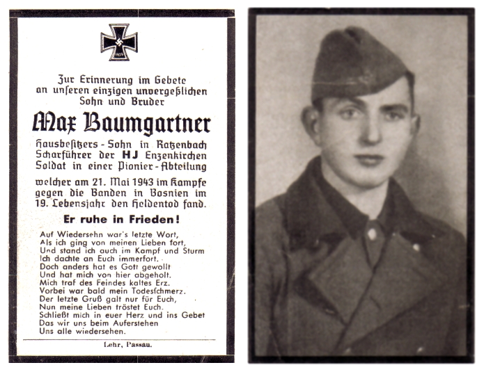 Sammlung Totengedenkbilder, Kameradschaftsbund Enzenkirchen, Oberösterreich (2005): Im Zuge der Erstellung der Ortschronik für die Gemeinde Enzenkirchen im Innviertel, beauftragte der dortige Kameradschaftsbund das Team „Zeit-Einblicke“ mit der Digitalisierung der vorhandenen Mitgliedschronik inklusive Weltkriegsfotos und einer Sammlung von Totengedenkbildern. Beide Bestände wurden der Gemeinde Enzenkirchen in digitaler Form übergeben und ergänzen seither das örtliche Gemeindearchiv.